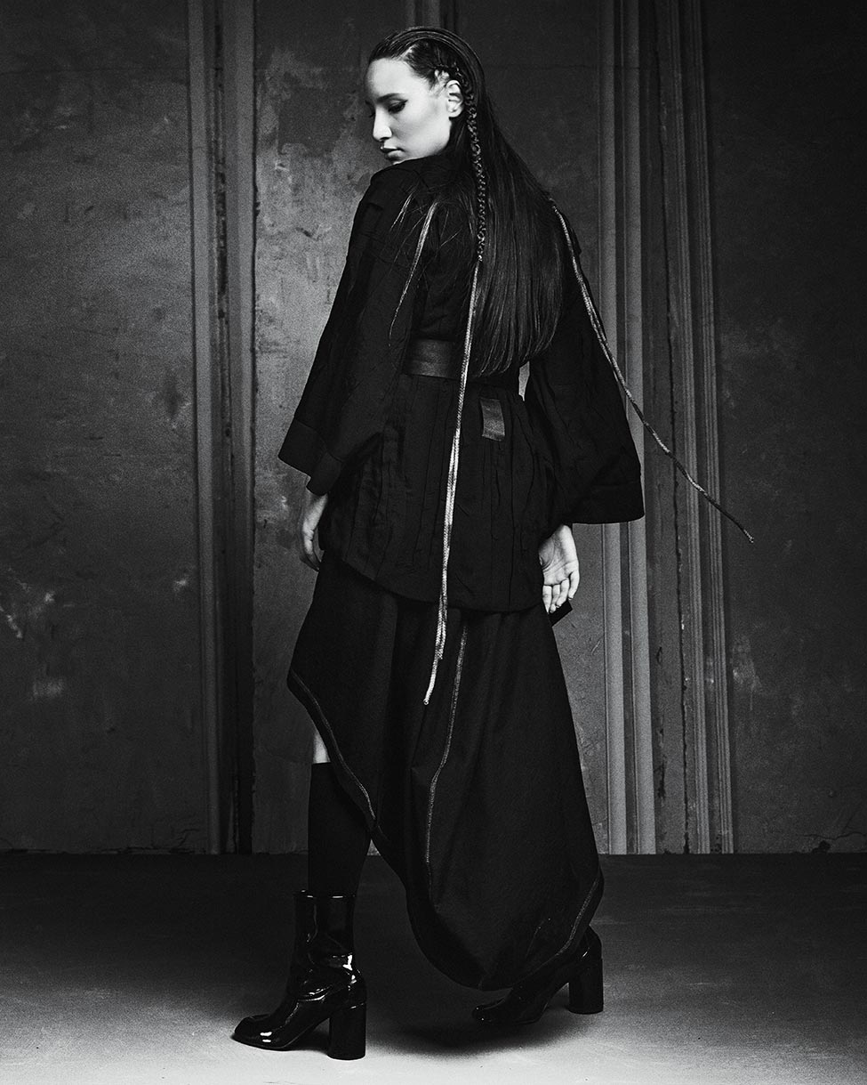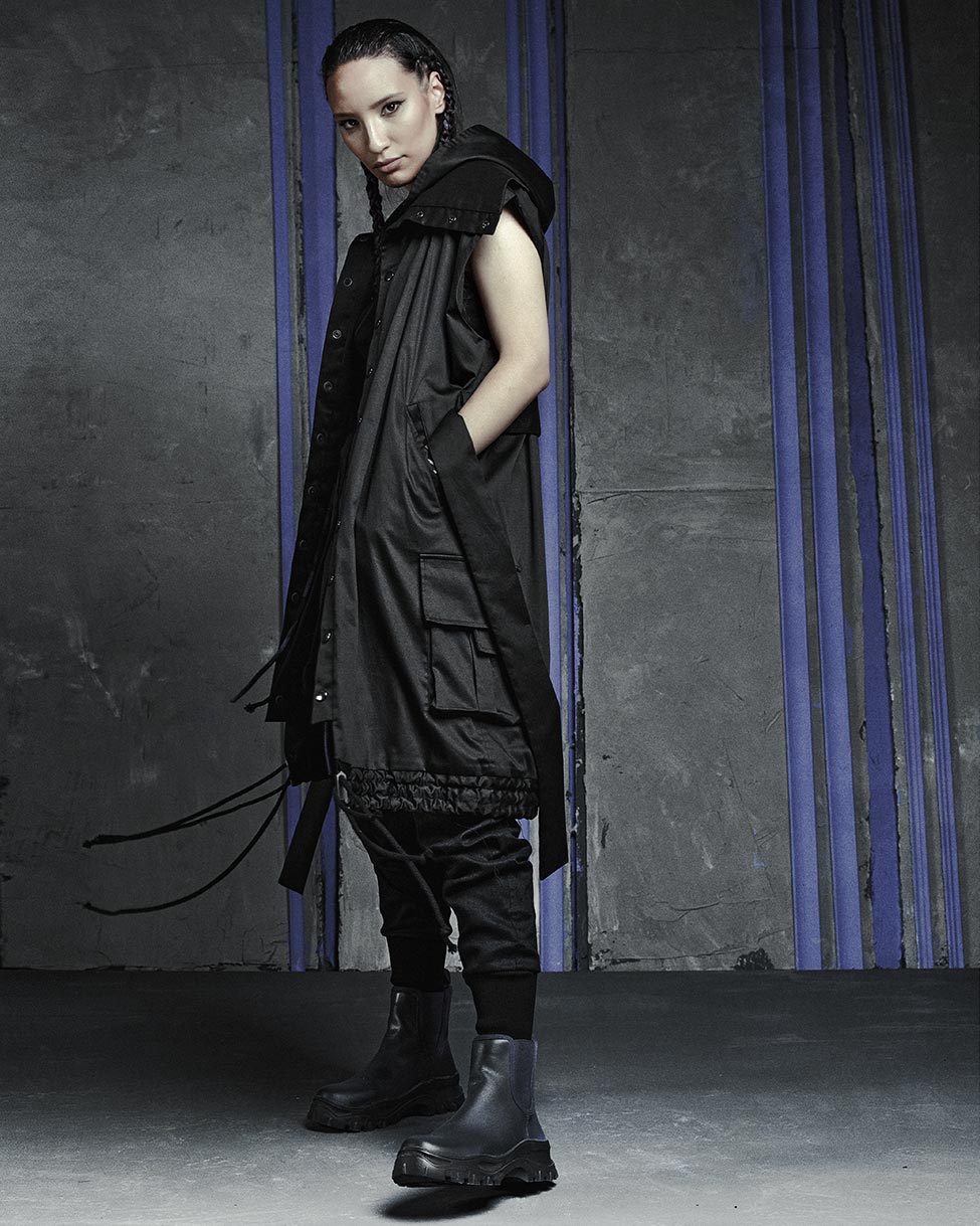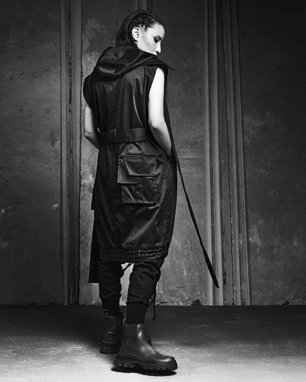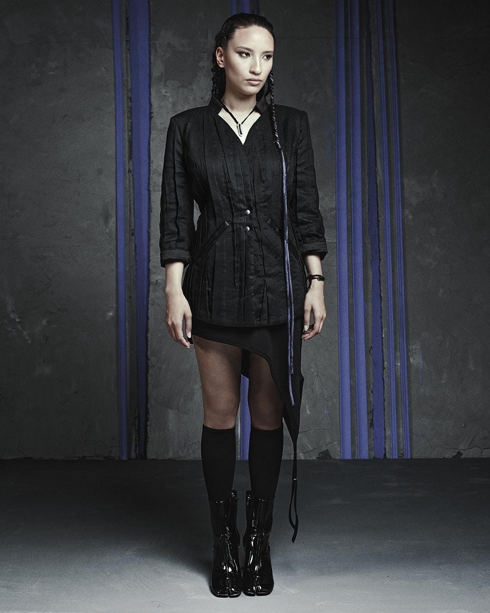 This structural men’s & women’s collection entitled ‘Entanglement’ is where fibers, segments and functional details vibrate in unison, creating one sophisticated, yet primordial appearance dedicated to a concept that defies logic.The connection between men’s & women’s appearance relates to the ghostly quantum phenomenon of entanglement. Such connection is created between widely separated individuals sharing like-minded aesthetic and understanding of beauty.From inertia through energy and back again to inertia forever and ever. An interaction transformed in artistic, functional silhouettes crafted in signature techniques.This Minoár seasonless collection is the foundation of timeless duality where the very act of observation is an act of creation. ENTANGLEMENT This structural men’s & women’s collection entitled ‘Entanglement’ is where fibers, segments and functional details vibrate in unison, creating one sophisticated, yet primordial appearance dedicated to a concept that defies logic.The connection between men’s & women’s appearance relates to the ghostly quantum phenomenon of entanglement. Such connection is created between widely separated individuals sharing like-minded aesthetic and understanding of beauty.From inertia through energy and back again to inertia forever and ever. An interaction transformed in artistic, functional silhouettes crafted in signature techniques.This Minoár seasonless collection is the foundation of timeless duality where the very act of observation is an act of creation.
