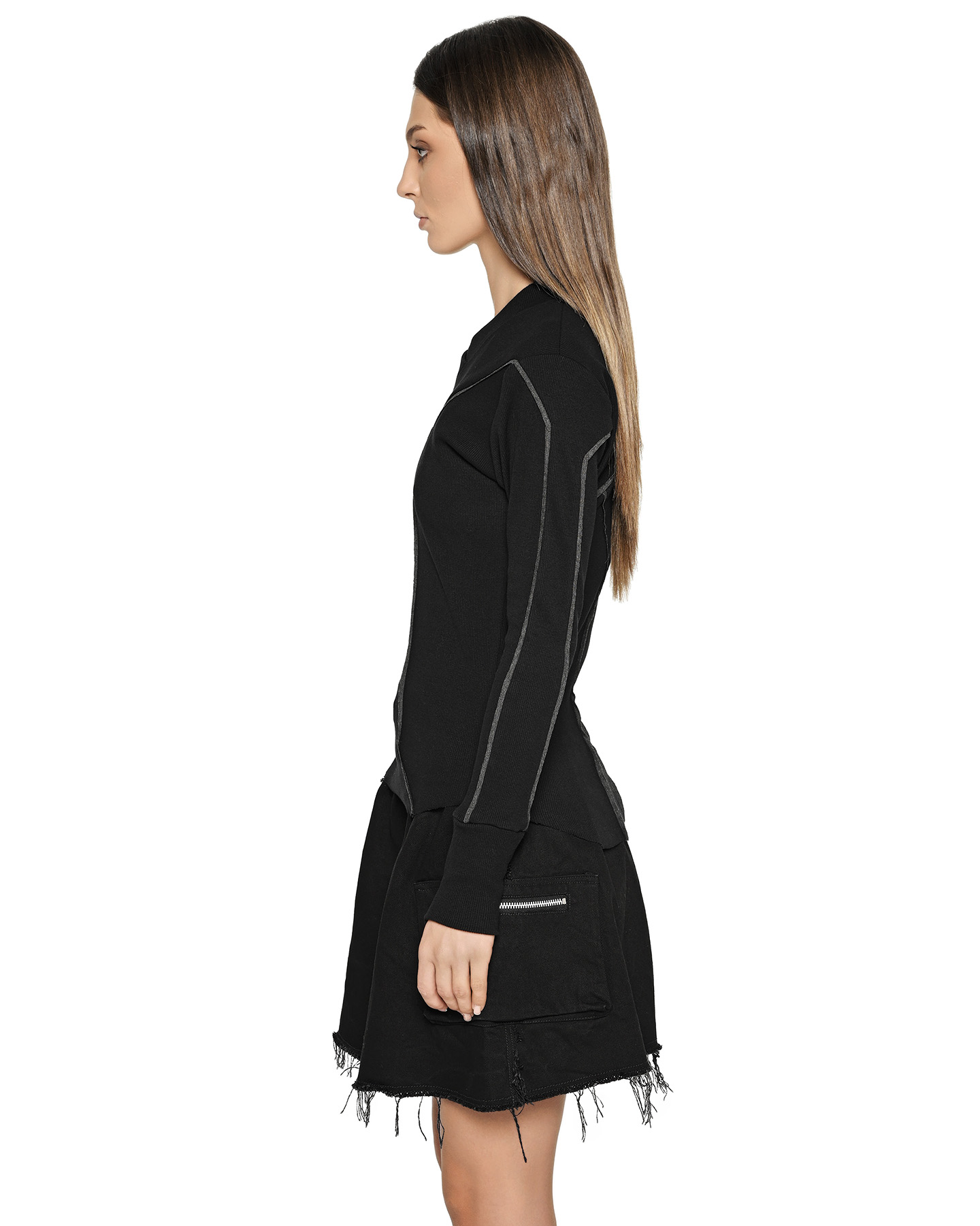 Multi-Cut Denim Washed Skirt