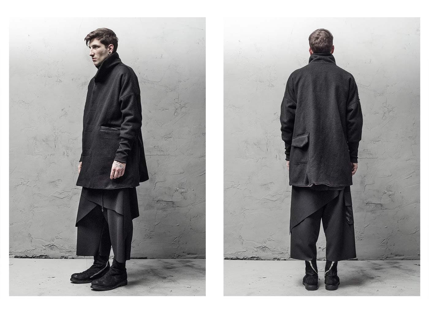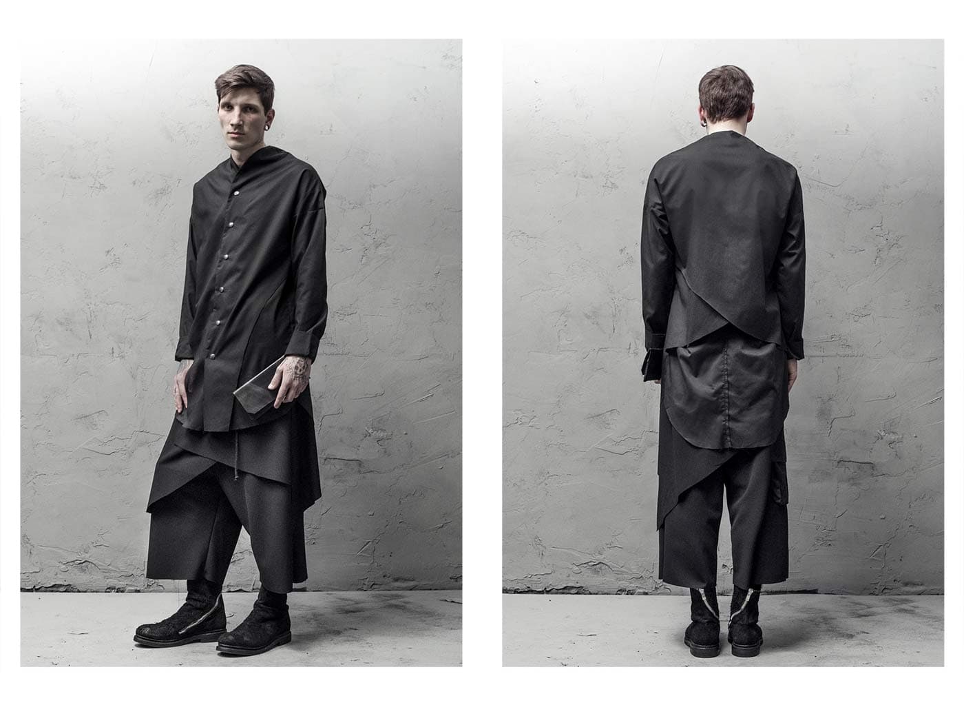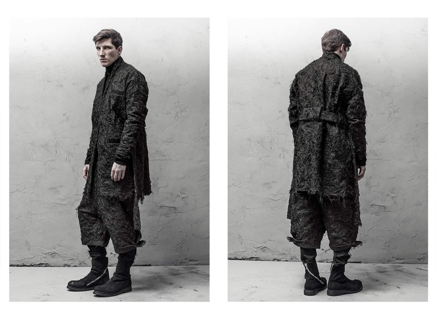 Behind the geometrical shape of the spiral lies the concept and provocation behind this men’s & women’s collection. An ancient geometric symbol found in the legacies left by the world’s greatest ancient civilizations. The rotation of the spiral is the mental relation between the human body and the garment. A sentient being possesses the inborn ability to bring meaning, concept, philosophy, individualism to his appearance. The spiral is a never ending crescendo. The crescendo of one’s awareness.